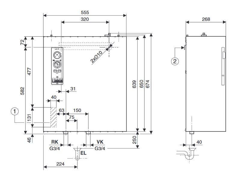Настенный одноконтурный электрический котел Buderus Logamax E213-8 со встроенным расширительным баком на 7 л. Котёл может работать как составная часть системы центрального отопления. Мощность - 8,1 кВт. Объем воды в котле - 9,5 л. Габариты - 555х674х268 мм. Масса - 36 кг.