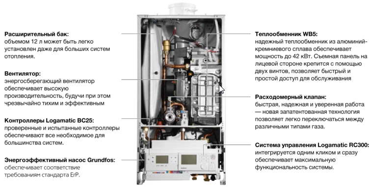 Настенный газовый конденсационный двухконтурный котел Buderus Logamax plus GB172-30 iKW H с закрытой камерой сгорания. Мощность - 4,2-30 кВт. Расширительный бак - 12 л. Коаксиальный дымоход- 80/125 мм. Габариты - 440x840x350 мм. Масса - 52 кг.