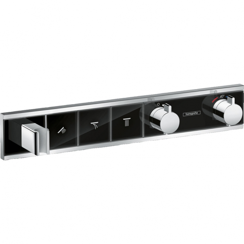 Термостатический встраиваемый смеситель для душа Hansgrohe RainSelect 15356600 выполнен в современном стиле, надежен и прост в эксплуатации. Оснащен держателем для лейки.