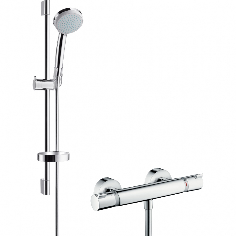 Комплект смесителя для душа Hansgrohe Ecostat Comfort 13116000 с термостатом и душевым гарнитуром Hansgrohe Croma 100 27032000 выполнен в современном стиле, надежен и прост в эксплуатации.