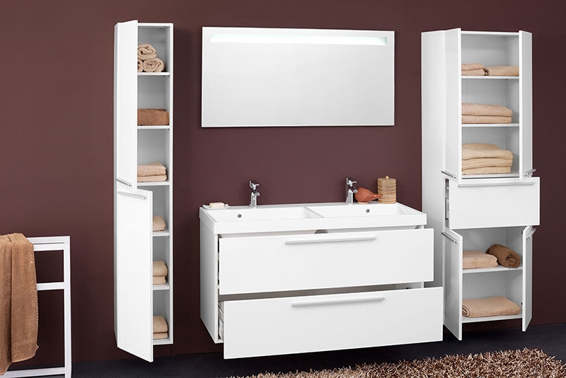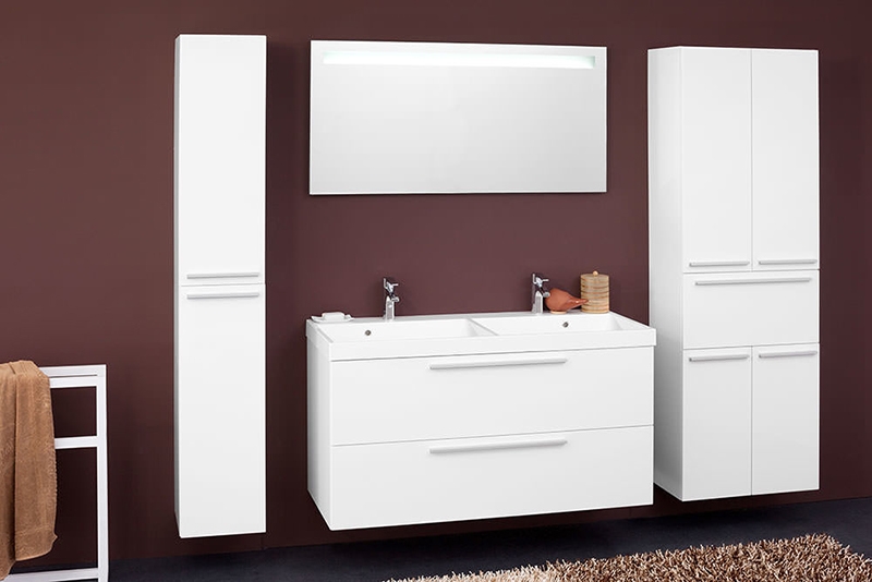 Безупречная и лаконичная модель с двумя выдвижными ящиками и ручками цвета хром. Прекрасно впишется в современный интерьер ванной комнаты.