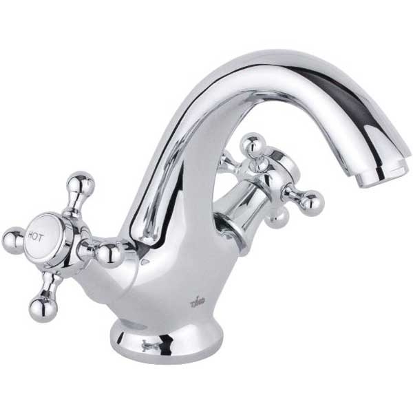 Двухвентильный смеситель с фиксированным изливом и аэратором, монтируемый в одно отверстие. Имеет долгий срок эксплуатации за счет качественных деталей, неприхотлив в уходе. Станет прекрасным дополнением ванной комнаты.