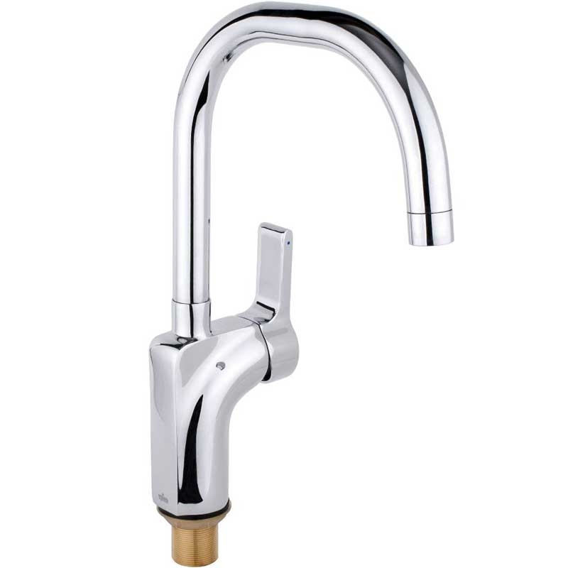 Однорычажный смеситель с поворотным изливом и аэратором, монтируемый в одно отверстие. Имеет долгий срок эксплуатации за счет качественных деталей, неприхотлив в уходе. Станет прекрасным дополнением кухни.