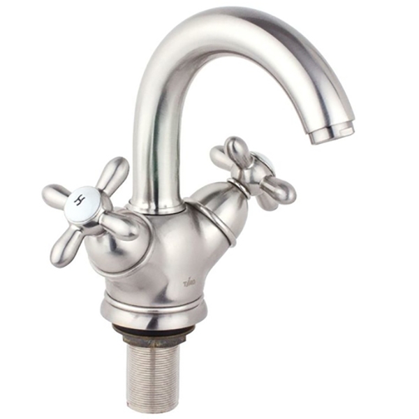 Двухвентильный смеситель с поворотным изливом. Имеет долгий срок эксплуатации за счет качественных деталей, неприхотлив в уходе. Станет прекрасным дополнением кухни.