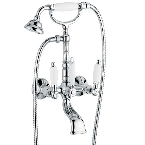 Смеситель Emmevi Deco Ceramic 121611 для ванны. Двухвентильный, с ручным душем, настенный. Цвет хром.