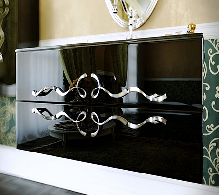 Подвесная тумба под раковину Aqwella Clarberg Due amanti 100 Due.01.10/BLK/CR черная глянцевая, с двумя выдвижными ящиками, с аккуратными и изящными хромированными ручками. Для использования в ванных комнатах с повышенной влажностью.