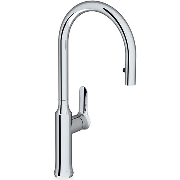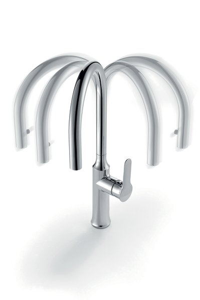 Однорычажный смеситель с поворотным изливом и аэратором, монтируемый в одно отверстие. Имеет долгий срок эксплуатации за счет качественных деталей, неприхотлив в уходе. Превосходно подойдет для различных вариантов дизайна кухни.
