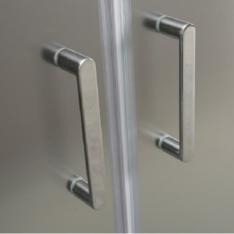 Раздвижная душевая дверь Бельбаньо Уно имеет две раздвижные створки, профиль выполнен из анодированного алюминия, стандарт DIN17611 2007, цвет хром. Полотно двери выполнено из рифленого закаленного стекла толщиной 5 мм и крепится на двойные подшипниковые ролики. Ручка выполнена из нержавеющей стали.