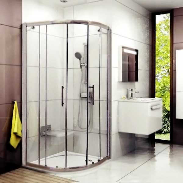 Стеклянный душевой уголок Ravak Blix 90x90 70508014 в форме четверти круга, с двумя раздвижными дверьми, в комплекте с поддоном и сифоном. Для установки угол душевой комнаты. Современный дизайн, функциональность, надежная ходовая часть и высокое качество.