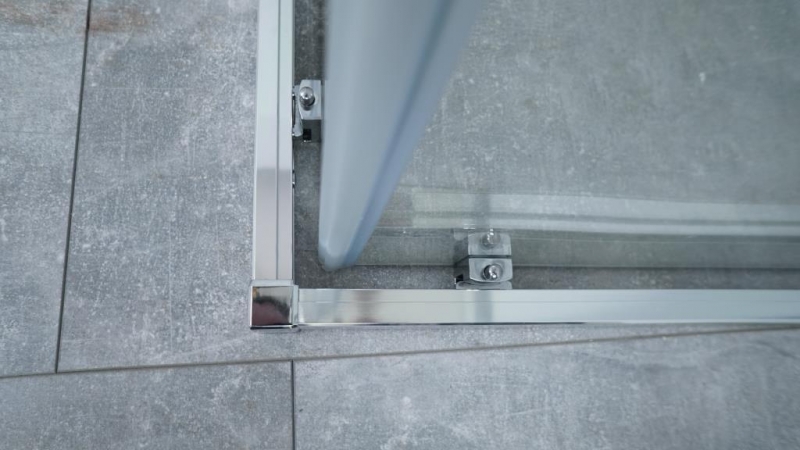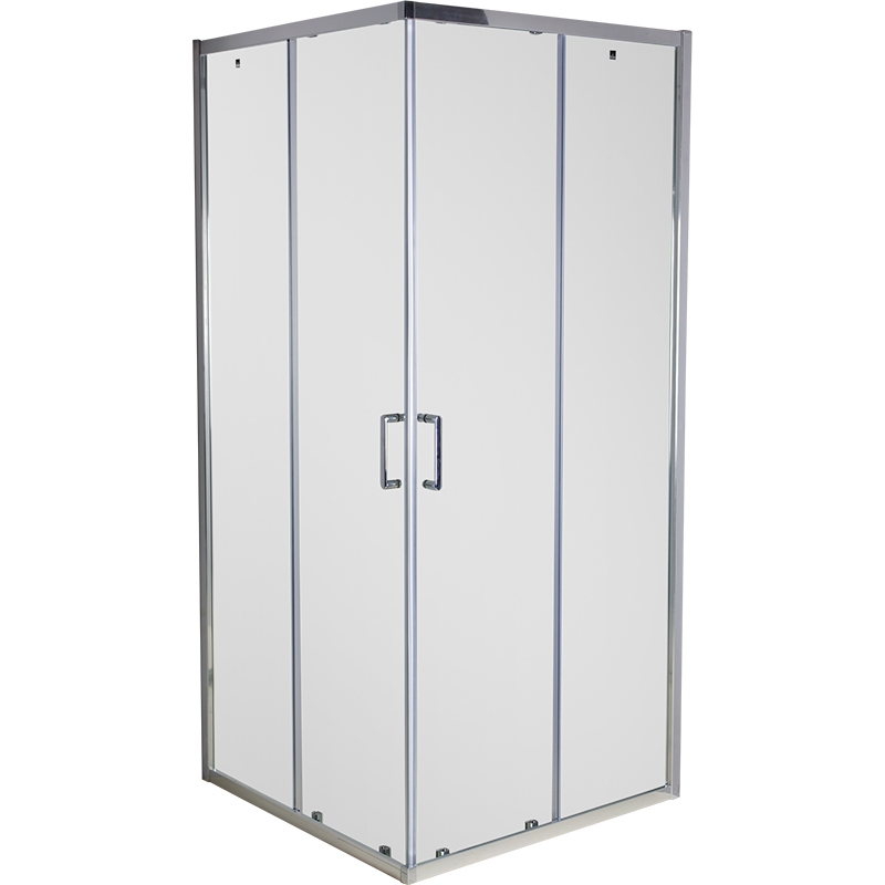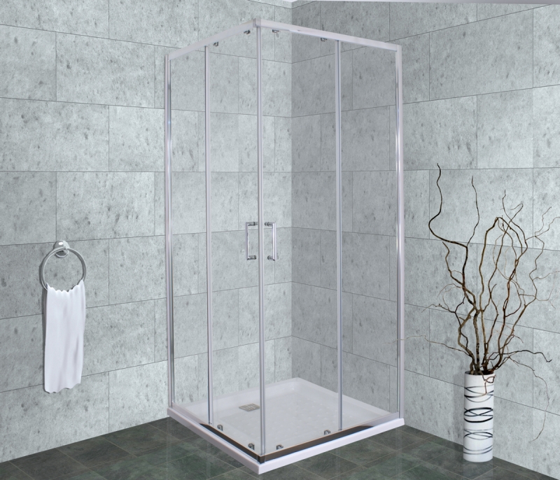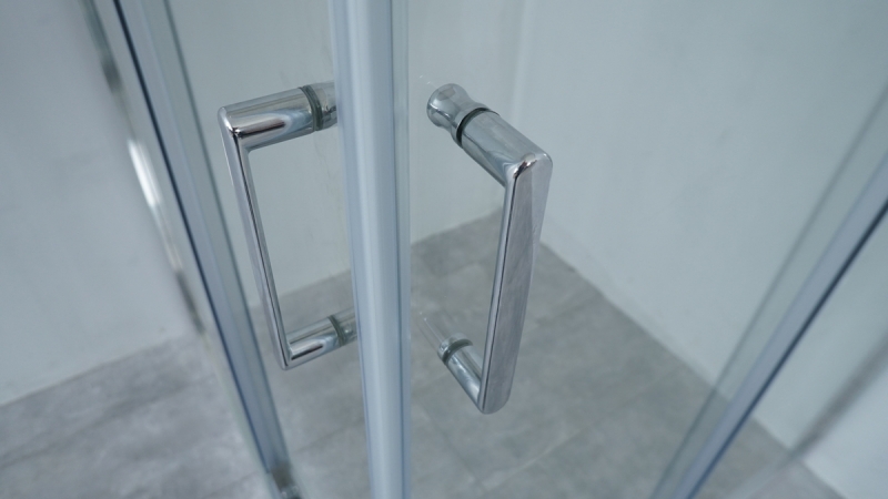 Раздвижные двери душевого уголка на бесшумных двойных роликах открываются комфортно с помощью 2х удобных ручек.