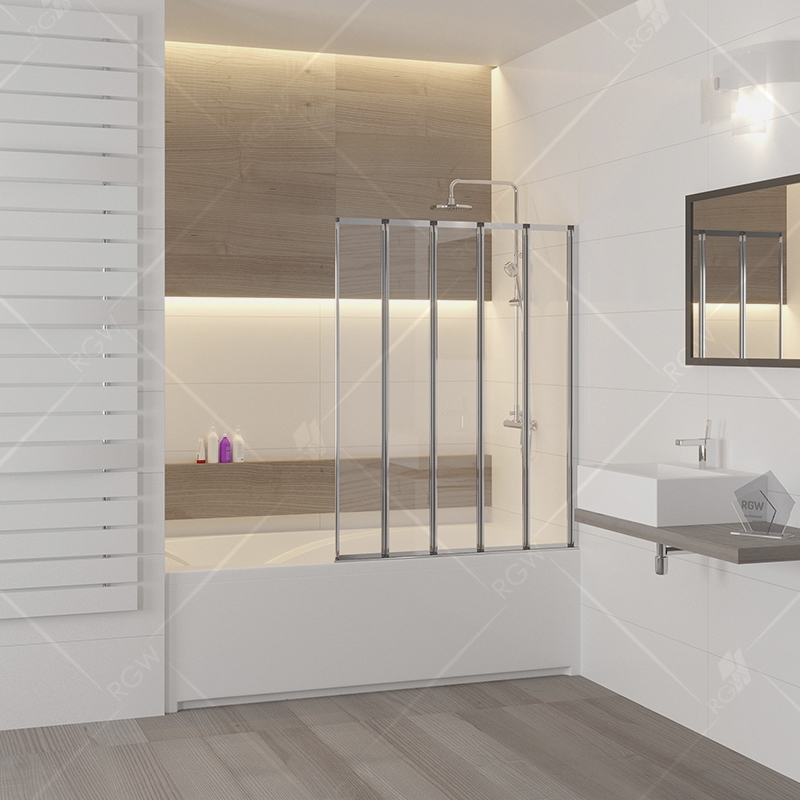 Стеклянная пятисекционная шторка на ванну RGW Screens SC-22 120x150 03112212-11 cкладная маятниковая. Универсальная установка с левой или правой стороны.