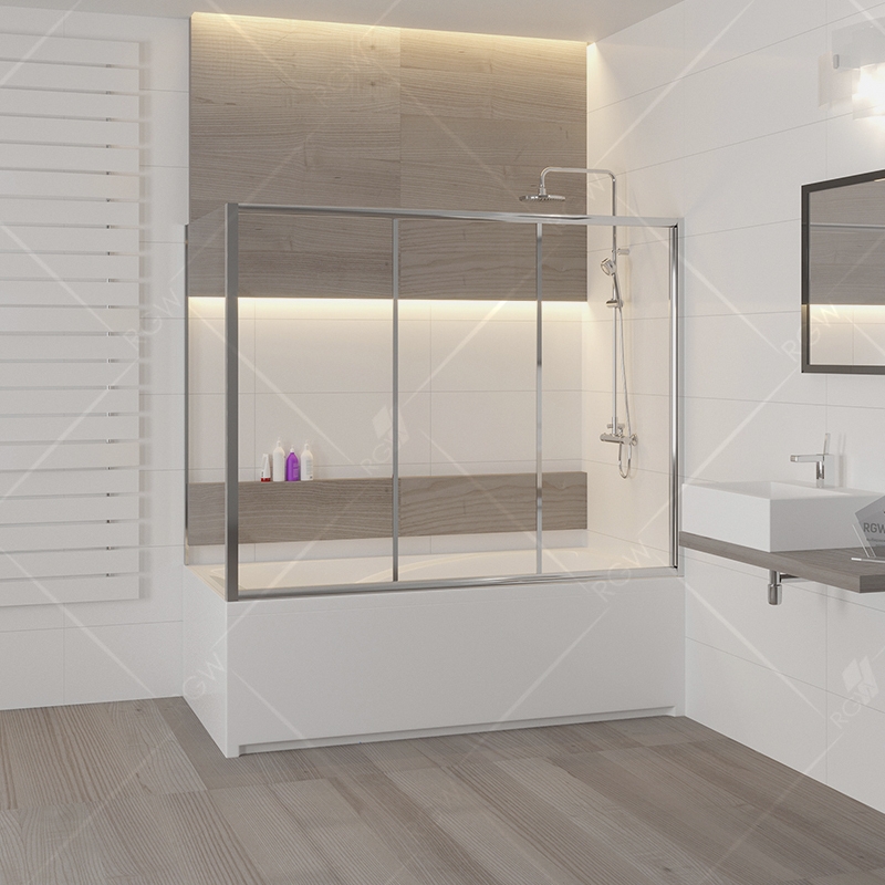 Стеклянная шторка на ванну RGW Screens SC-81 180x70 04118187-11. Два сдвижных стекла, одно неподвижное стекло и боковая панель.