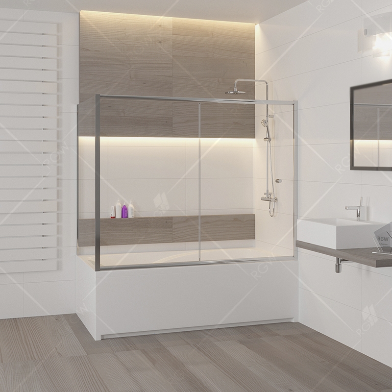 Стеклянная шторка на ванну RGW Screens SC-82 180x80 04118288-11 раздвижная. Одно сдвижное стекло, одно неподвижное стекло и боковая панель.