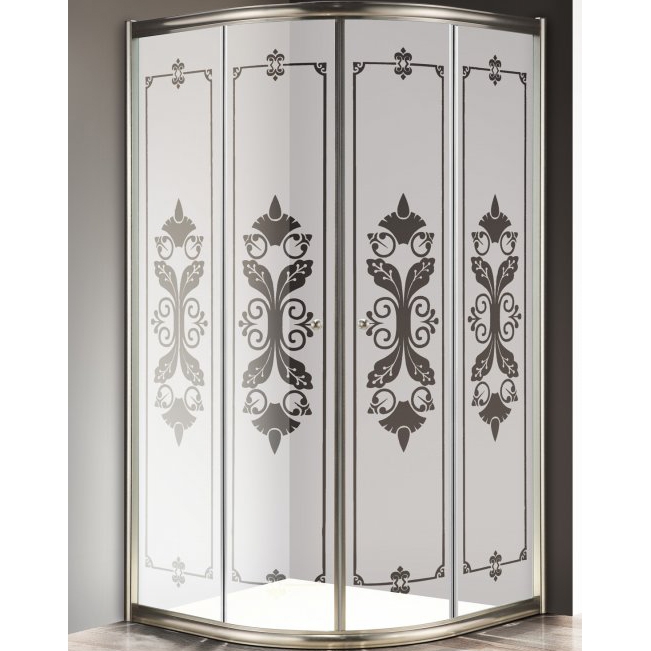 Душевой уголок Cezares Giubileo R2 90x90 (GIUBILEO-R-2-90-SCORREVOLE-CP-G). Уголок оснащен раздвижными дверцами с прозрачными стеклами толщиной 6 мм с матовым принтом. Профиль алюминиевый цвета золото. Уголок выполнен в форме четверти круга с радиусом закругления 550 мм, он отлично впишется в интерьер ванной комнаты в любом стилистическом оформлении. Для удобства монтажа предусмотрена возможность изменения глубины и ширины за счет регулировки профиля: от 885 до 900 мм.