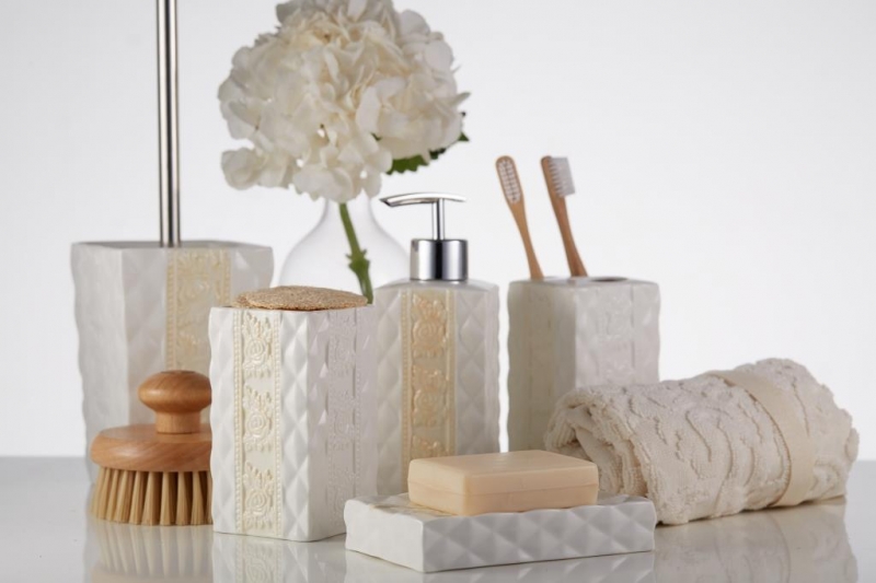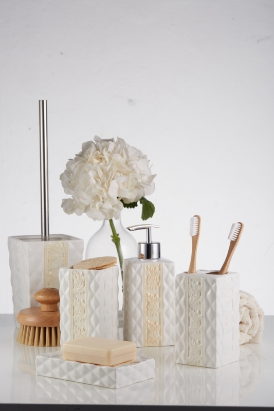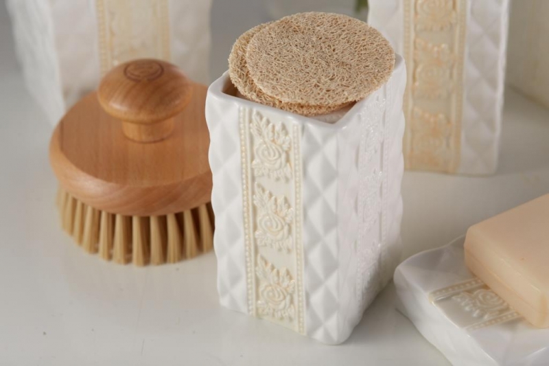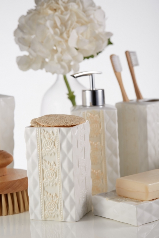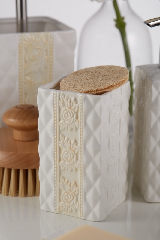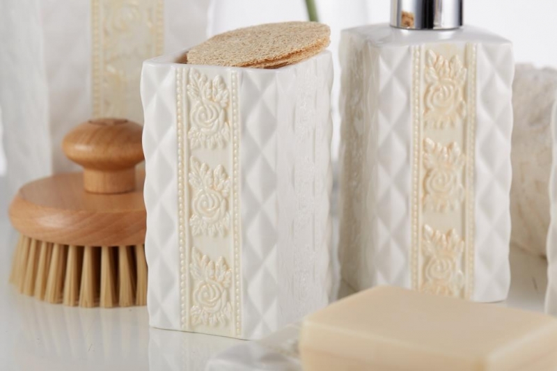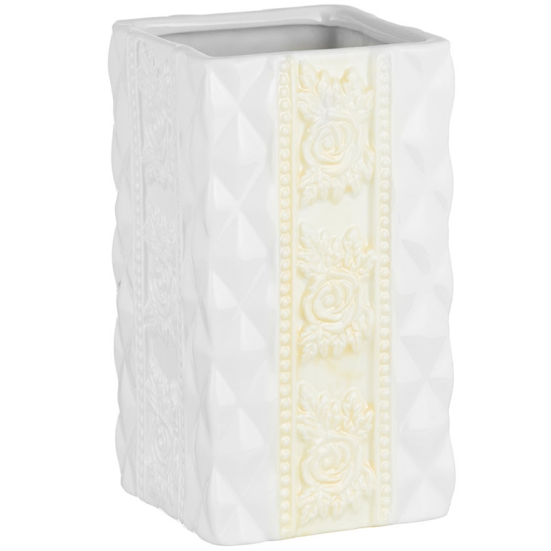 Стакан для зубных щеток Fora Diamond FOR-DM042 - изделие изготовлено из керамики, с характерными прямыми контурами и объемными геометрическими элементами выполнено в молочно-белой гамме с бежевой вставкой.