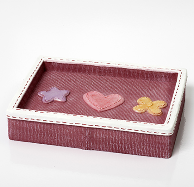 Мыльница из полирезина WasserKRAFT Ammer K-6429 выполнена в красном цвете, украшена белой декоративной прострочкой и милыми деталями.