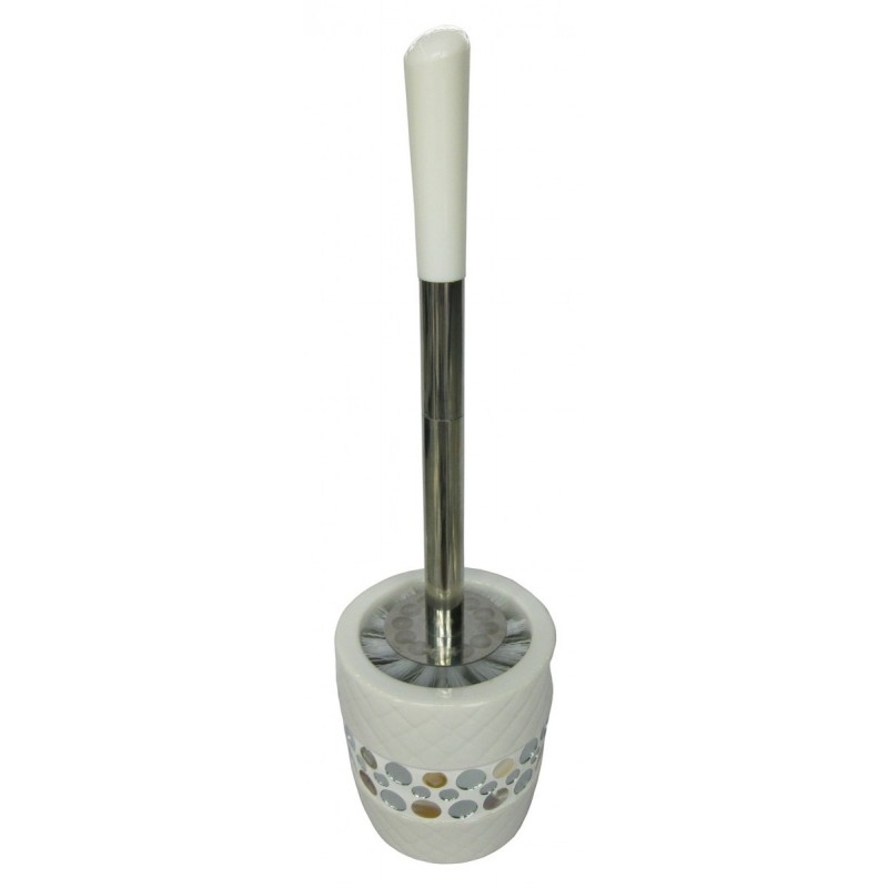 Выполнен из пластика и керамики, украшен зеркальными круглыми элементами.