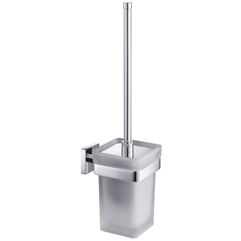 Стакан для ерша выполнен из прочного стекла, с матовым белым напылением. А оправа из латуни с покрытием из глянцевого хрома.