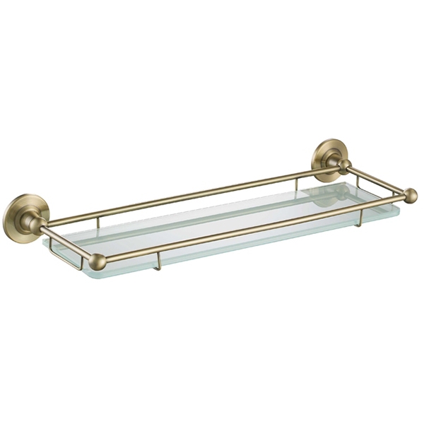 Держатели изготовлены из качественного латунного сплава с защитными свойствами от коррозии и покрытием бронза. Полка из прозрачного стекла.