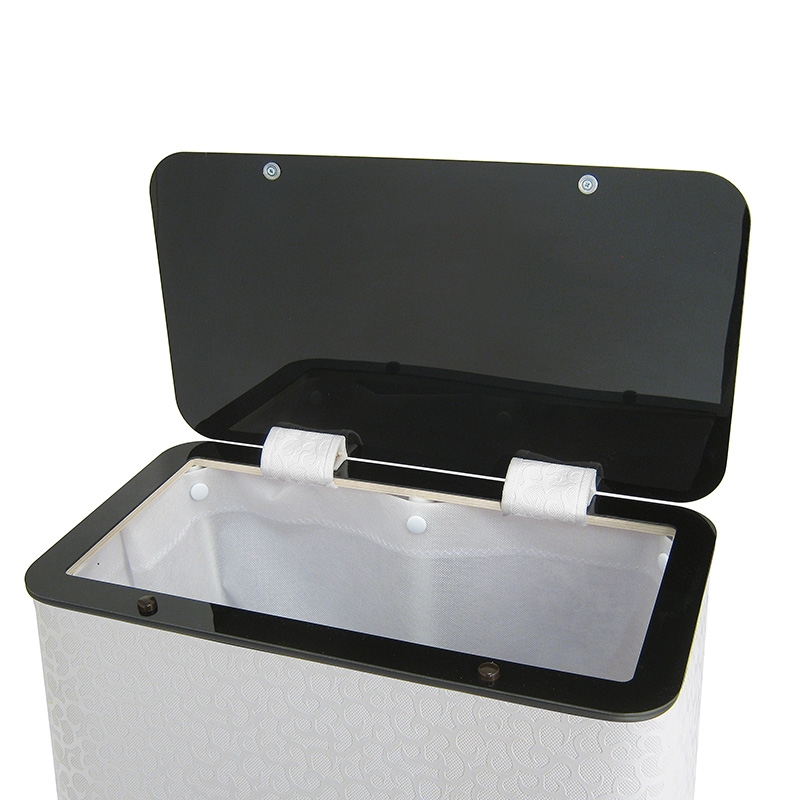 Средняя корзина для белья Cameya Flower FWC-M в белом цвете с контрастной черной отделкой. Дизайн бельевой корзины легко впишется в интерьер ванной комнаты в любом стиле.