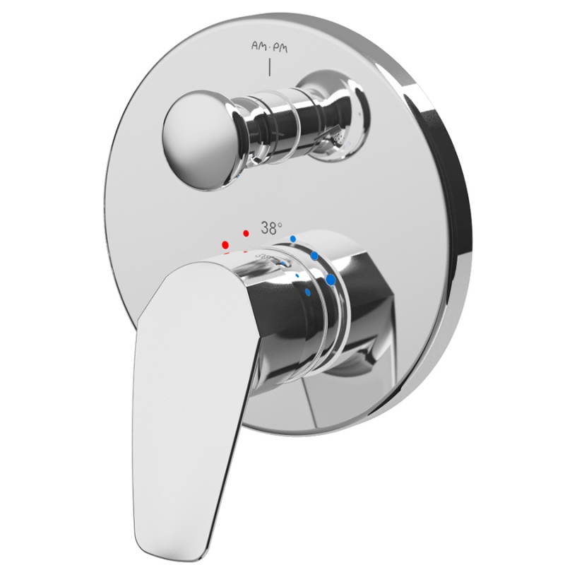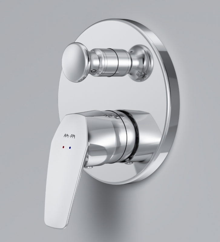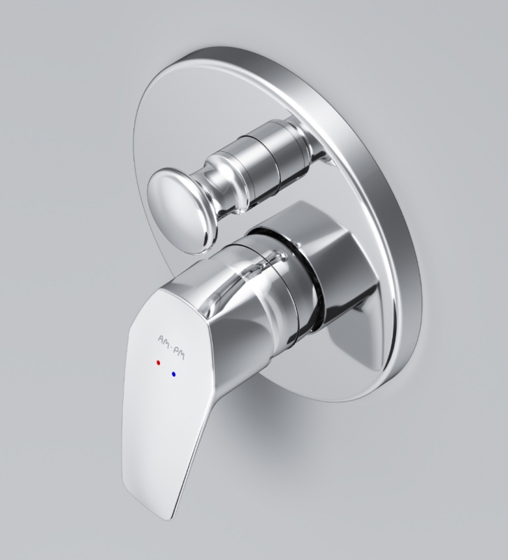 AM.PM Gem F9085000 - смеситель для внутренней инсталляции. Идеален для современных душевых и ванных комнат. Утонченная элегантность, роскошь и простота. Это то, что радикально отличает его от других. Удобство использования рычага управления заключается в точности и плавности хода. Конструкция керамического картриджа SoftMotion также обладает низким уровнем шума. Изящный керамический дивертор в одно касание направляет воду из душа в излив и обратно.