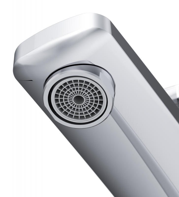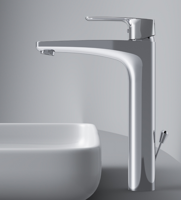 Высокий излив придает смесителю утонченный вид и идеально подойдет для раковины с глубокой чашей, а благодаря обширной зоне движения ручки управлять температурой воды еще проще.