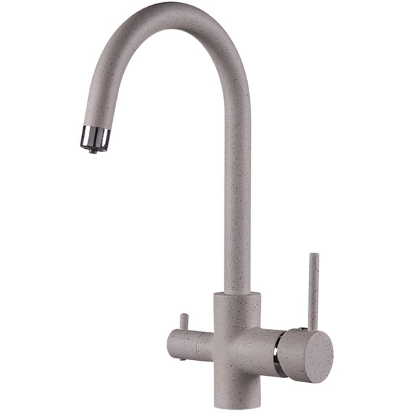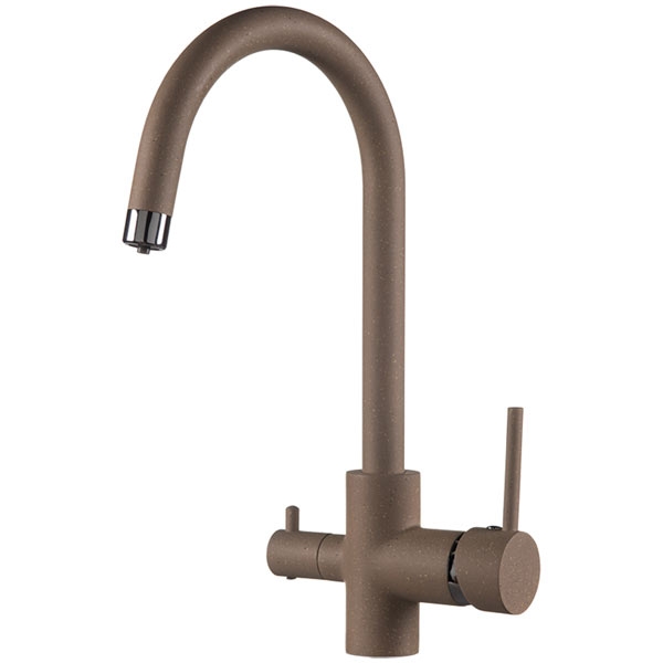 Смеситель для кухни Rossinka Z35-28-Sand песочный одноручный с высоким поворотным изливом и подключением к фильтру питьевой воды.
