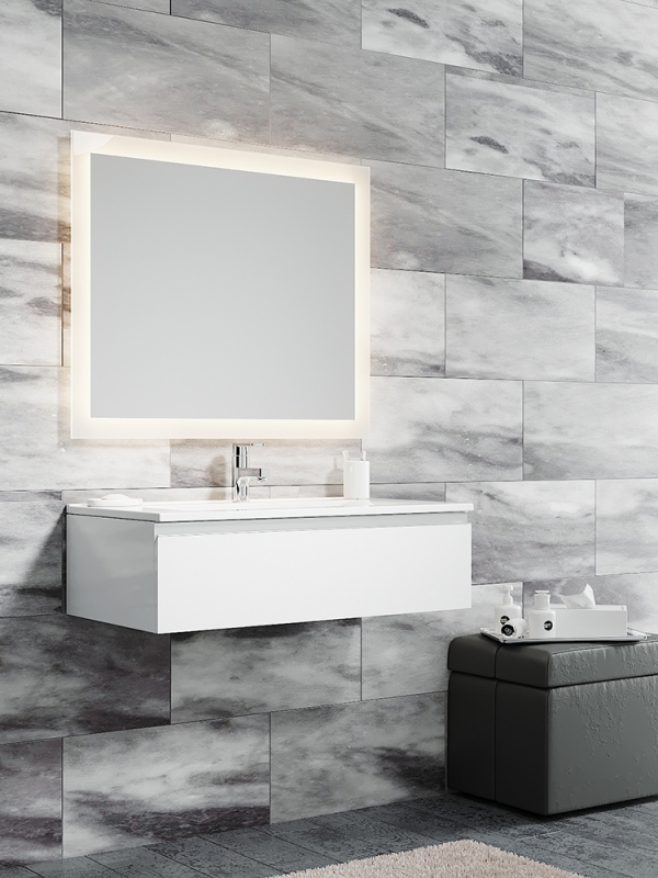 Стильная тумба с безупречным дизайном и строгими формами прекрасно дополнит интерьер любой ванной комнаты.