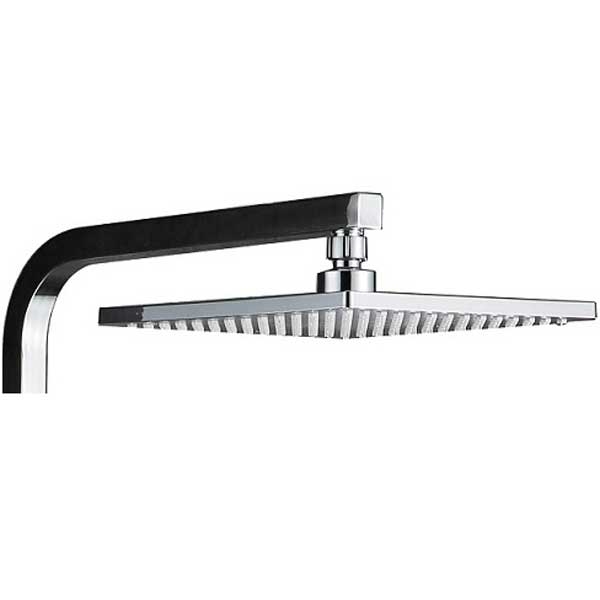 Верхний душ: тропический дождь. Длина кронштейна 32 см. Тонкий квадратный диск. Размер: 23 х 23 см. Штанга регулируется по высоте: +/- 60 см (80 - 140 см).