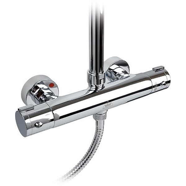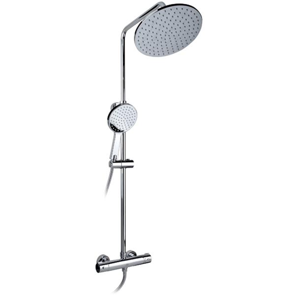 Душевая система Timo Termo SX-1050 с круглым верхним душем, с двухвентильным смесителем и термостатом. Решение для ванной в современном стиле.