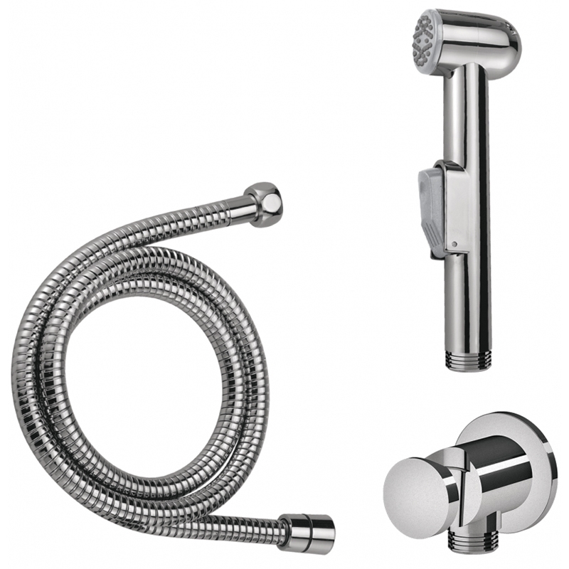 AM.PM F0202100 - набор для гигиенического душа. Состоит из держателя, к которому подводится гибкий шланг с водой, а также лейки гигиенического душа. Лейка оснащена пусковой кнопкой, для более удобного использования. Гибкий шланг обернут в металлическую оплетку с хромированным покрытием.