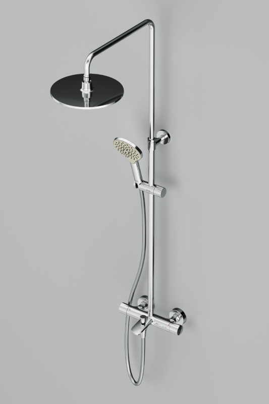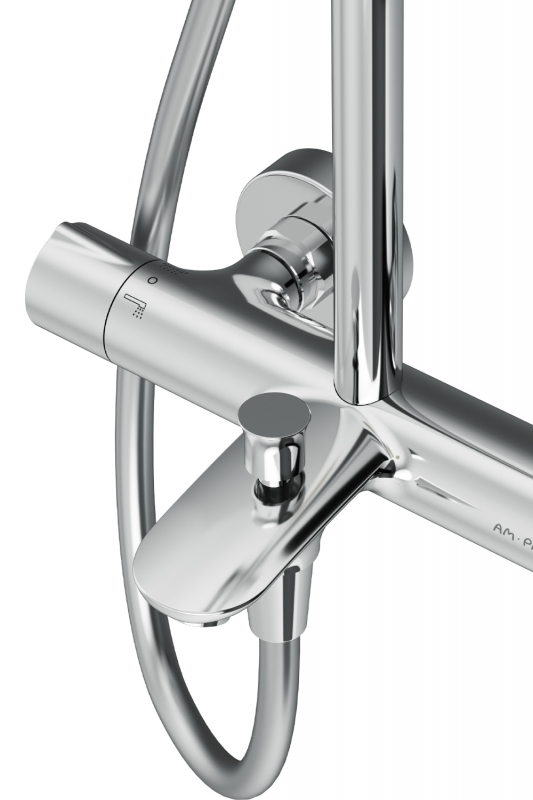 Душевая система AM.PM Like F0780564 с круглым верхним душем, с термостатическим смесителем с изливом.