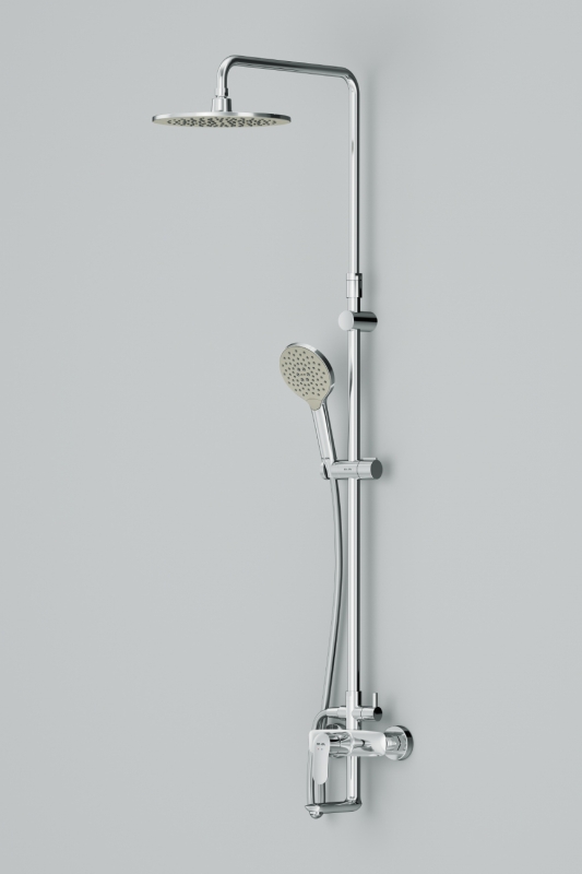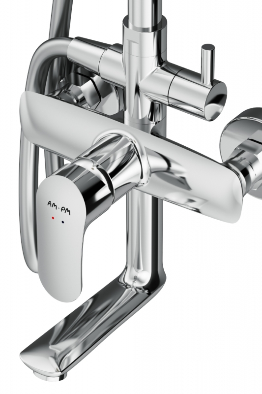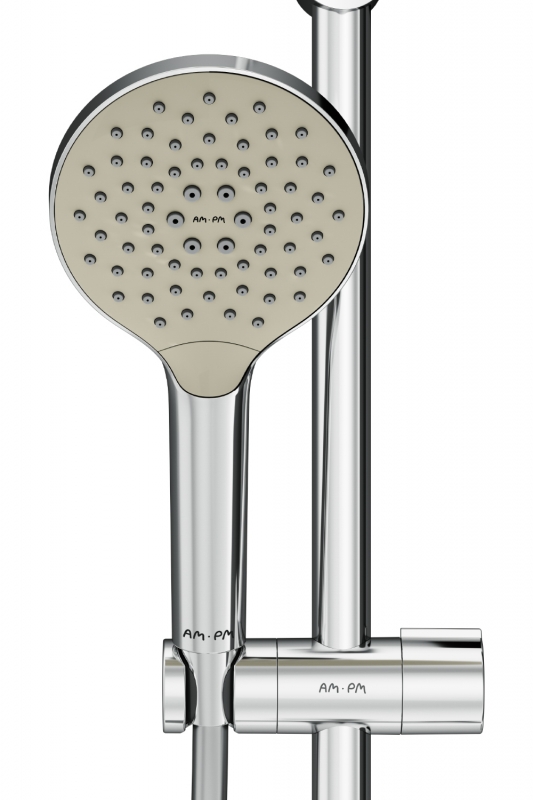 AM.PM Like F0780964 - универсальная душевая система с изливом и смесителем. Имеет регулируемый по длине размер. Держатель для ручного душа регулируется по высоте. Трехпозиционный керамический дивертор дает напор воды в верхний, ручной душ и излив. Ручка смесителя управляет мощностью напора воды и температурой. Размер верхнего душа позволяет создать эффект тропического душа. А лейка ручного душа имеет 3 режима работы струи.
