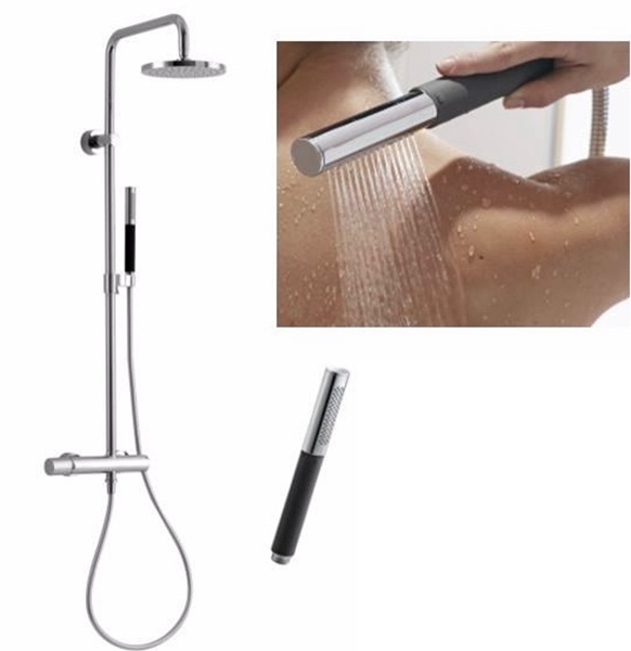 Душевая система Jacob Delafon Toobi E8993-CP с термостатом, ручным душем и верхним тропическим душем.