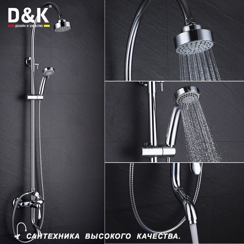 Душевая система D&K Ambrosius Rhein DA1343701C11 с однорычажным смесителем с поворотным изливом, ручным душем с держателем на штанге и круглым верхним душем.