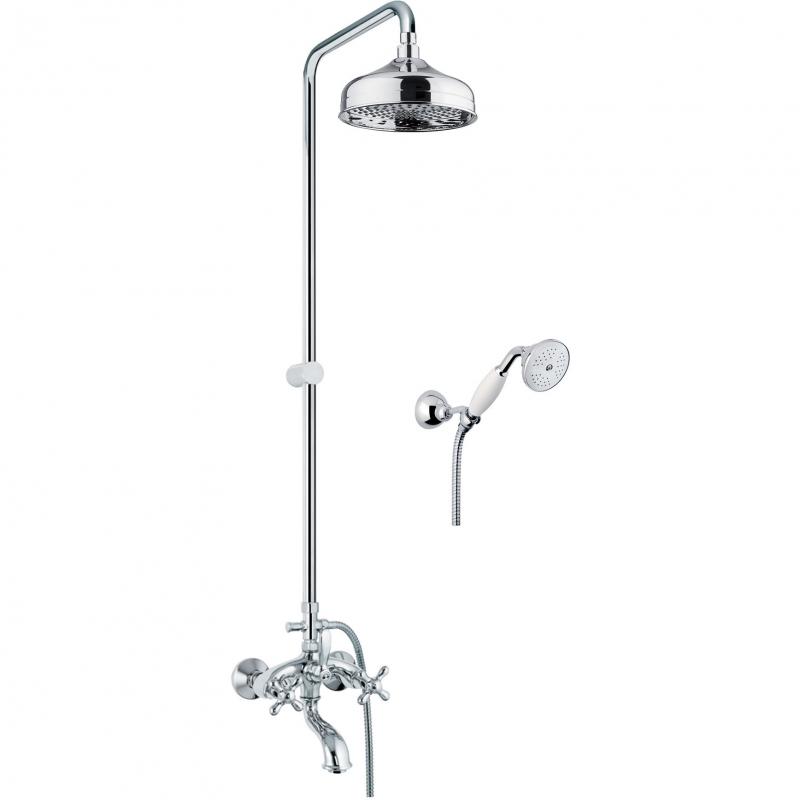 Душевая система Webert Armony AM721208015 с двухвентильным смесителем с изливом, с верхним и ручным душами. Изысканный стиль ретро. Высококачественные материалы соответствуют международным нормам. Надежное покрытие защищено от царапин, влаги и воздействия окружающей среды.