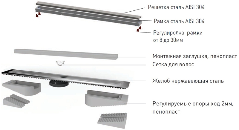 В комплекте поставки: душевой лоток, решетка.
