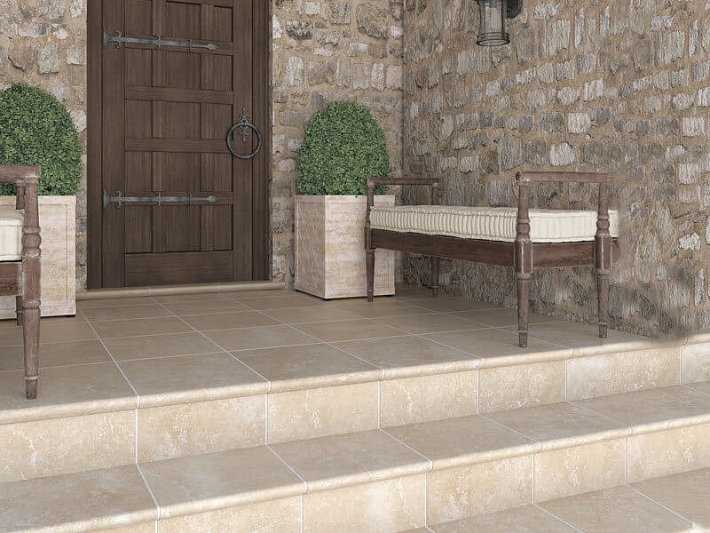 Ступень фронтальная Exagres Stone Peldano Cream 33х33 см надежная, функциональная и очень красивая, благодаря своему рисунку украсит ваш фасад и придаст ему вид натурального камня. Матовая текстурная поверхность устойчива к морозам. В упаковке 1 штука. Вес упаковки составляет 1,23 кг.
