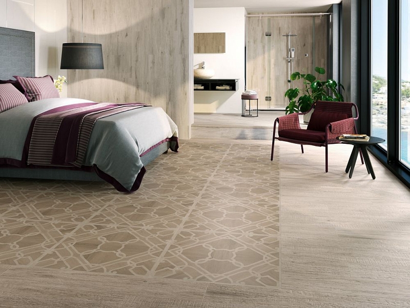 Керамогранит Ape Alabama Noa Faggio Rect 75х75 см с матовой поверхностью, со светлым симметричным геометрическим рисунком, стилизованный под паркет. Может использоваться для отделки гостиных, спален, кухонь, столовых, ванных комнат и других интерьеров. Можно создать керамический ковер в определенной зоне. В упаковке 3 штуки общей площадью 1,69 м2. Вес упаковки составляет 24,8 кг.