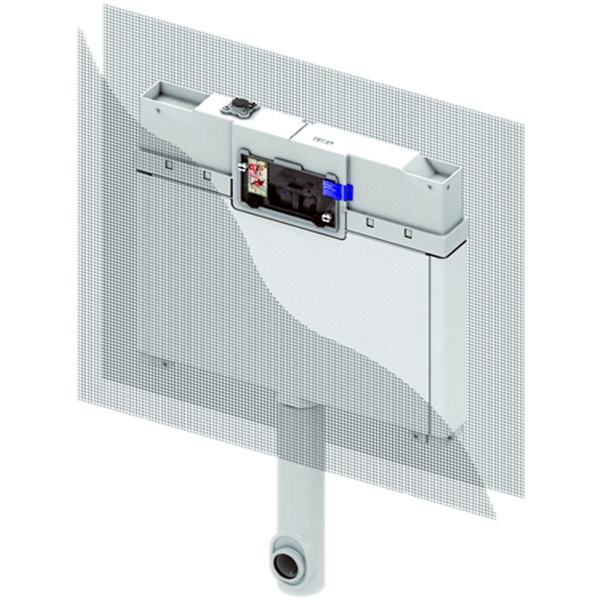 Застенный смывной бачок скрытого монтажа Tece Рrofil 9370007 для установки напольного унитаза. Глубина 8 см. Фронтальное расположение кнопки смыва.