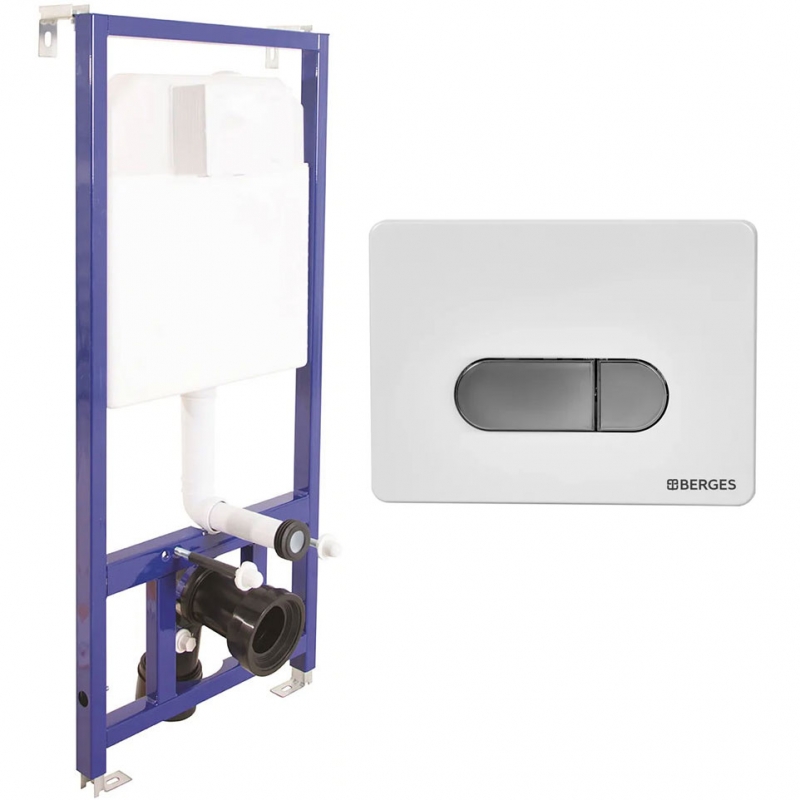 Инсталляция Berges Wasserhaus Novum D7 со смывным бачком и белой, хром клавишей смыва. Артикул: 040237.