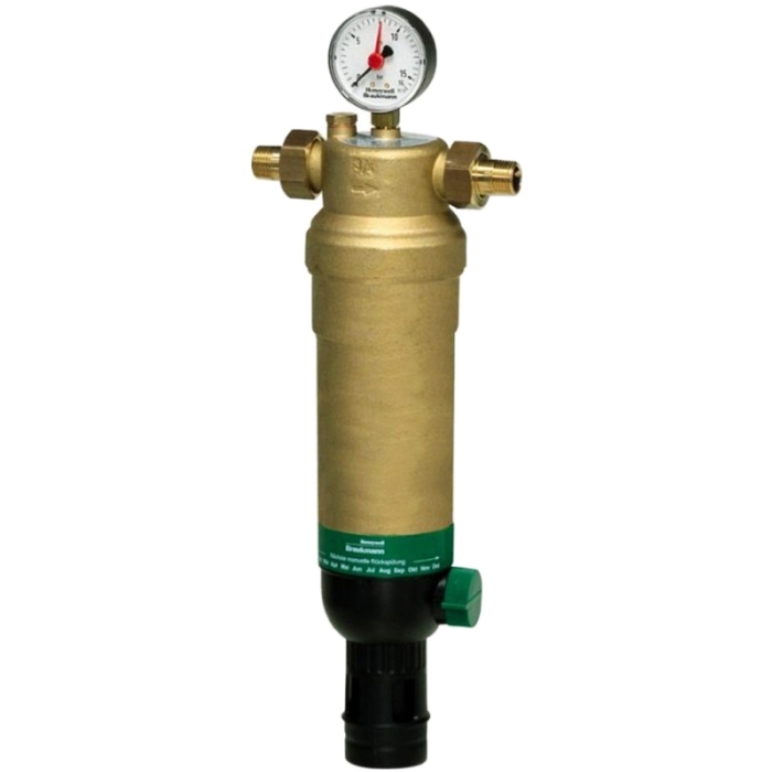 Сетчатый фильтр тонкой очистки для горячей воды Honeywell F76S-1AAM с обратной промывкой. Создан на базе запатентованного узла Habedo. Осуществляет непрерывную подачу отфильтрованной воды и препятствует проникновению инородных тел размером более 100 мкм. Мусор удаляется при включении режима обратной промывки поворотом ручки шарового клапана в подставленную емкость или в канализацию (требуется врезка). Во время работы режима обратной промывки чистая вода продолжает поступать. Предусмотрена автоматизация включения режима обратной промывки.