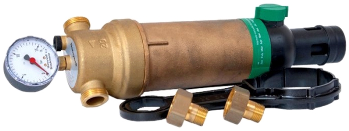 Сетчатый фильтр тонкой очистки для горячей воды Honeywell F76S-3/4AAM с обратной промывкой. Создан на базе запатентованного узла Habedo. Осуществляет непрерывную подачу отфильтрованной воды и препятствует проникновению инородных тел размером более 100 мкм. Мусор удаляется при включении режима обратной промывки поворотом ручки шарового клапана в подставленную емкость или в канализацию (требуется врезка). Во время работы режима обратной промывки чистая вода продолжает поступать. Предусмотрена автоматизация включения режима обратной промывки.