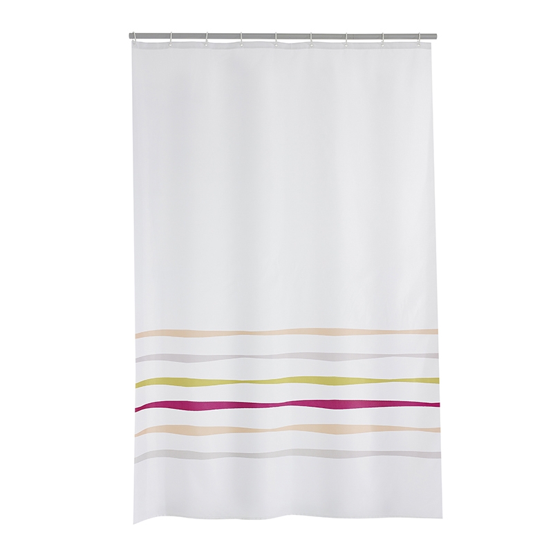 Материал: полиэстер. Мягкая и прочная ткань с водоотталкивающими свойствами. Она не мнется, не выцветает со временем и быстро сохнет после намокания. Шторка хорошо переносит стирку в стиральной машине (при температуре до 40 градусов).