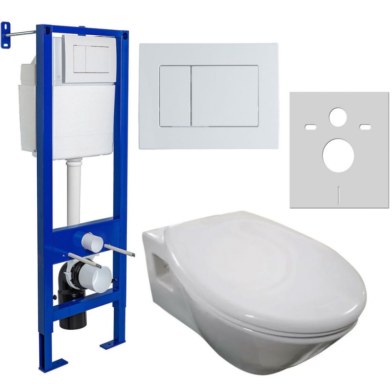 Комплект подвесного унитаза Berges Wasserhaus Top Standart с крышкой-сиденьем микролифт Optim PSO, инсталляцией Аtom 410 и кнопкой смыва белого цвета. Артикул: 046333.