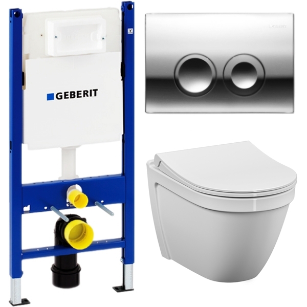 Комплект унитаза Vitra S 50 5956B003-0101 с инсталляцией Geberit Duofix Delta UP100 458.124.21.1 крышкой-сиденьем и клавишей смыва.
