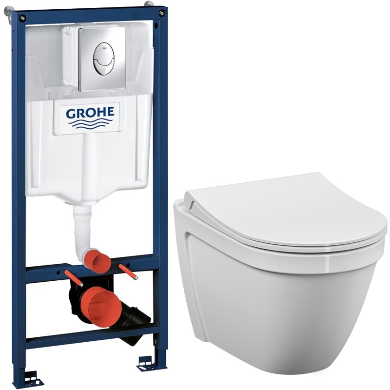 Комплект унитаза Vitra S 50 5956B003-0075 с инсталляцией Grohe Rapid SL 38721001, крышкой-сиденьем и клавишей смыва.