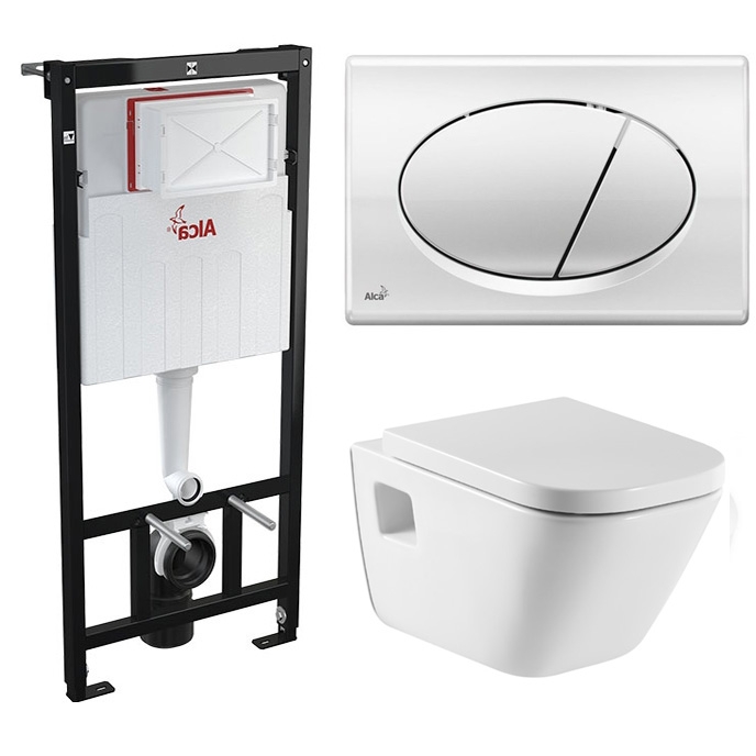 Комплект унитаза The Gap 346477000 с сиденьем Soft Close 801472004, с инсталляцией Alcaplast Sadromodul AM101/1120+M71 и с клавишей смыва цвета Хром глянец.