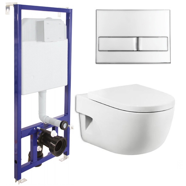Комплект унитаза Roca Meridian N 346247000 с сиденьем Soft Close 8012A2004, инсталляцией Berges Wasserhaus Novum 040213 и клавишей смыва цвета глянцевый хром.