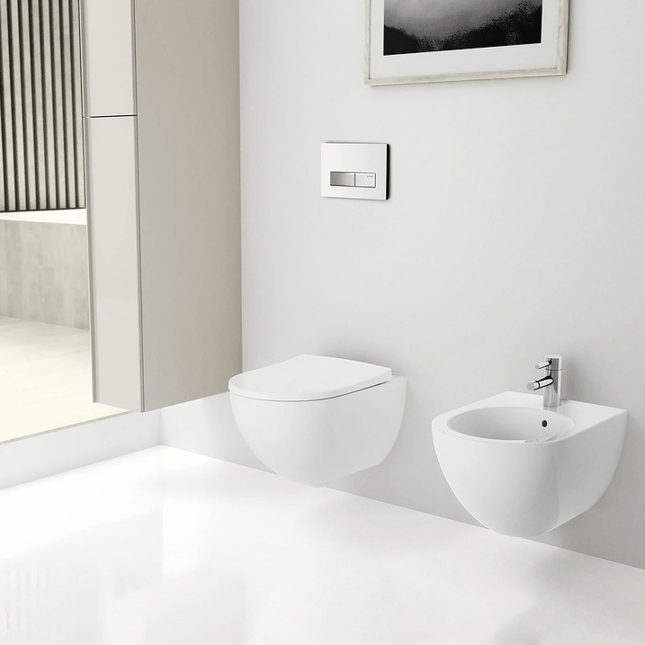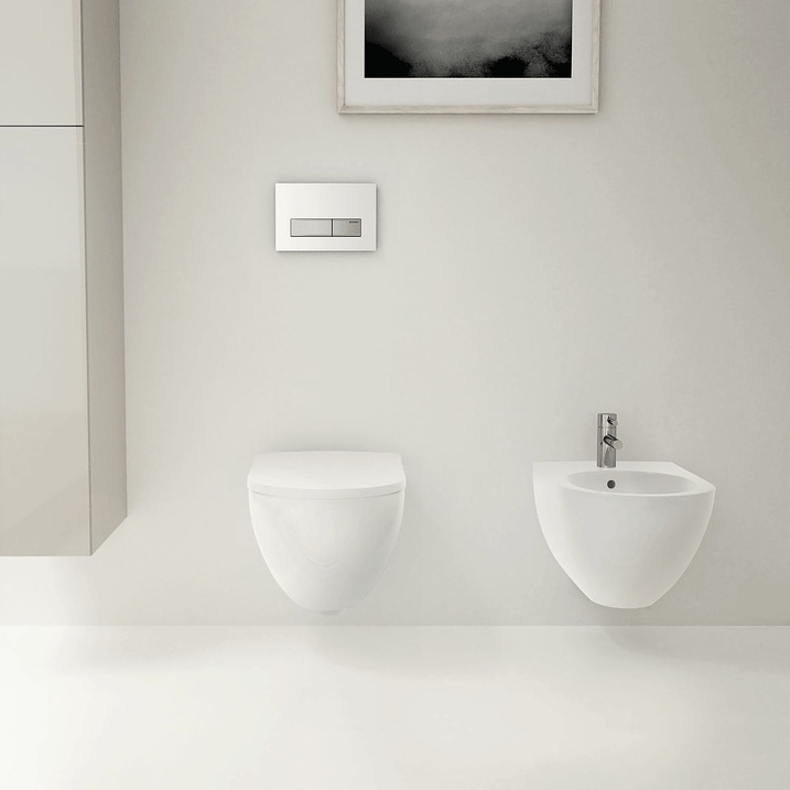 Комплект унитаза Geberit Acanto 500.128.21.A с инсталляцией Geberit Delta, сиденьем soft-close. Эффективная безободковая система смыва.